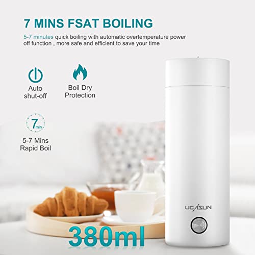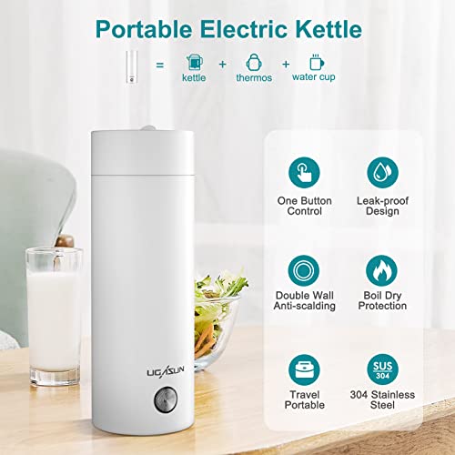 ONEVER Bollitore da viaggio portatile da 400 ml, mini bollitore 3 in 1, scaldabagno per acqua calda, spegnimento automatico, bollitore da viaggio per tè, caffè, latte e fast food