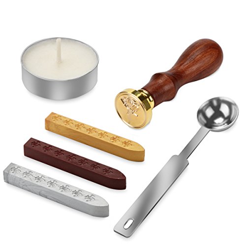 ONEVER Retro set di timbro di sigillo di cera con bastone di cera, cucchiaio, perfetto per un regalo (Rose Image1)