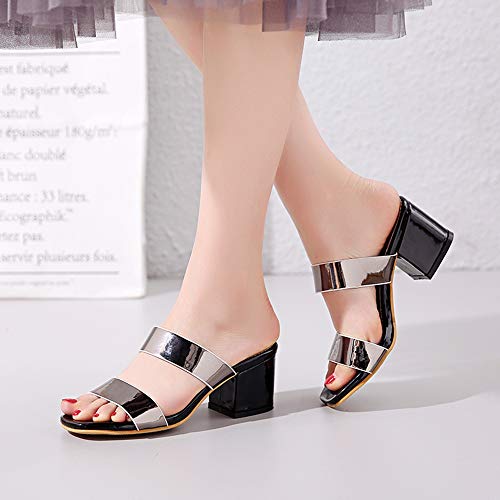 Onewus Sandali da donna alla moda con tacco, Nero (metallo), 38 EU