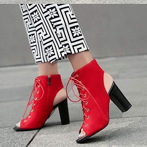 Onewus Peep Toe - Sandali estivi da donna, Beige (Colore: rosso), 35 EU