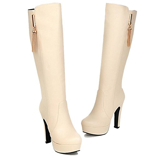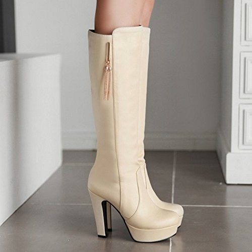 Onewus Stivali da donna alla moda con tacco alto, Nero (beige.), 33 EU