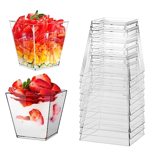 Onezebra Tazze da Dessert, 50 coppe da dessert in plastica, Tazze Da Dessert Quadrate in Plastica con 50 cucchiai, Riutilizzabili per Dessert, Mousse, Budini, Gelati, Buffet, Festa 2oz/60ml