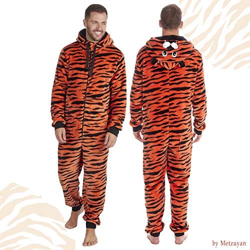 Fantastica tuta intera per lui con tigre, in pile super morbido, disponibile nelle taglie S/M, M, L e XL.