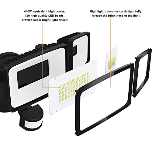 【SUPER LUMINOSO E RISPARMIO ENERGETICO】 55W faretto con sensore di movimento ha 112 LEDs, in grado di produrre una luminosità di 5000 lm, risparmiando il 80% consumo energetico.