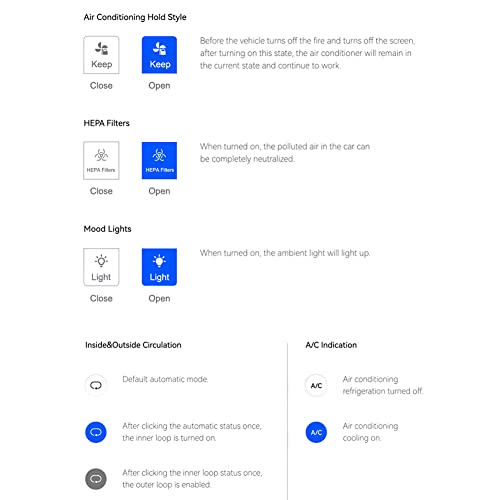 【Ampia gamma di funzioni】: attraverso questo schermo posteriore possiamo realizzare funzioni come controllo dell'aria condizionata, riscaldamento (deve essere attivato), controllo della luce ambientale, circolazione interna ed esterna, illuminazione, musica di intrattenimento e film, 3 porte USB esterne, ecc.