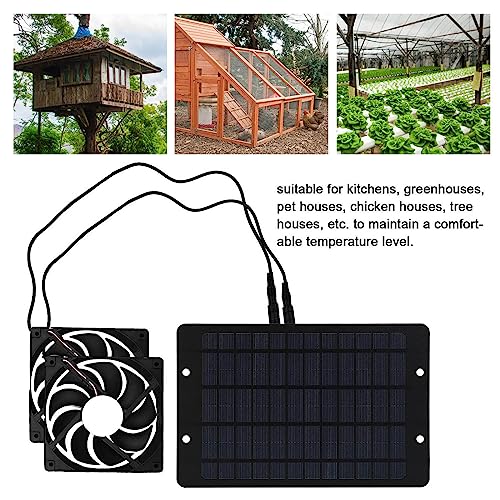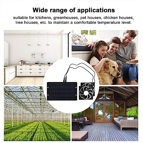 Raffreddamento e ventilazione: questo kit di ventilatori a pannello solare è progettato per espellere l'aria calda e aspirare aria fredda, che può ridurre efficacemente la temperatura interna e mantenere l'aria fresca, che è la soluzione perfetta per le calde estati.
