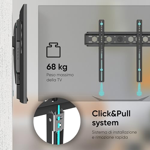 DESIGN | Design premium della staffa TV fissa ultra-sottile di alta qualità è a basso profilo, il che significa che non sporge troppo dalla parete a solo 2,9 cm e non occuperà molto spazio nella vostra stanza | il nostro braccio da parete TV offre un supporto stabile e duraturo per il vostro televisore con un peso massimo di 68 kg | La base a perfetta forma progettate per una sicurezza massima