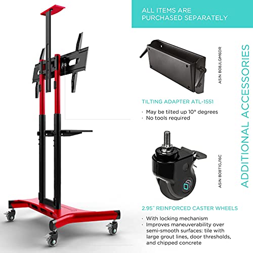 SISTEMA DI GESTIONE DEI CAVI: Porta TV da pavimento ha un sistema di gestione dei cavi integrato per nascondere fili e cavi. Mantieni gli accessori puliti e in ordine. Grazie all'adattatore opzionale - ATL-1551 (se puoi collegarlo, sarebbe l'ideale) puoi regolare l'inclinazione da 0° a 10°