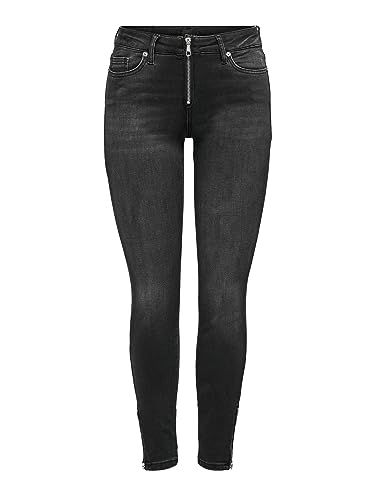 ONLY Onlblush Life Mid Zip W Skin A DNM Rea Jeans, Denim Grigio Scuro, (M) W x 32L Donna