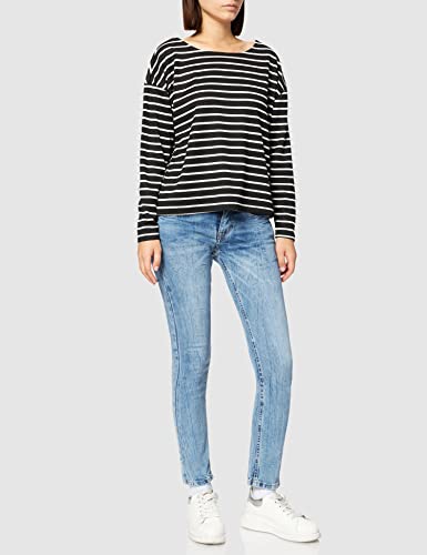 ONLY Onlbrilliant L/S Boatneck Top Jrs Blouse, Nero/Strisce: Cloud Dancer, L Donna