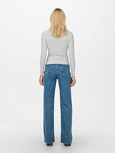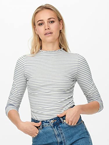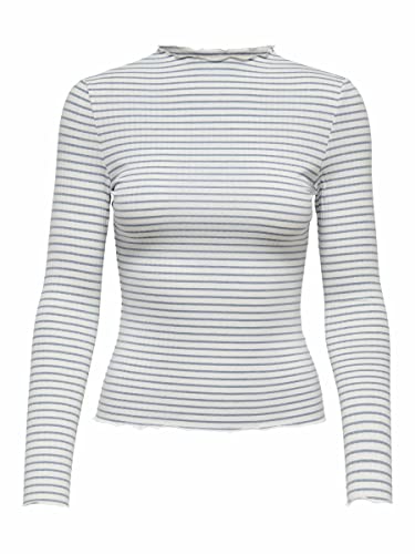 Only Onlemma LS High Neck Stripe Top Jrs T-Shirt, Cloud Dancer/Strisce: Sottili Strisce Blu Infinito, L Donna