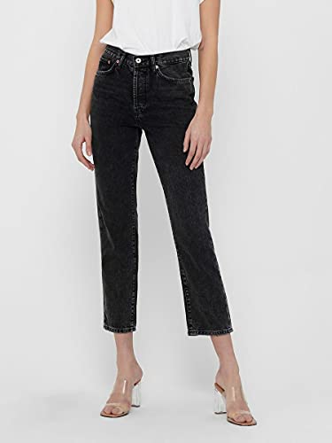 Only ONLFINE Life Hi Rise STRA Ank DNM Jeans, Nero, 29W x 32L Donna