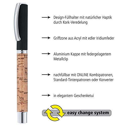 Online 36915, penna stilografica"Vision Nature", in legno di palissandro, con confezione regalo primavera F Sughero