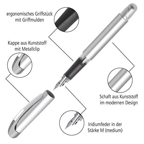 Online Penna stilografica College Metallic Black, penna stilografica per destrorsi, impugnatura ergonomica, pennino iridio di alta qualità, cartucce di inchiostro standard, con cartuccia combinata