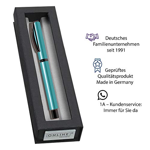 ONLINE Penna stilografica Vision Magic, design trasparente, in alluminio effetto metallizzato, penna Iridium EF, adatta per cartucce standard e convertitori, confezione regalo, turchese