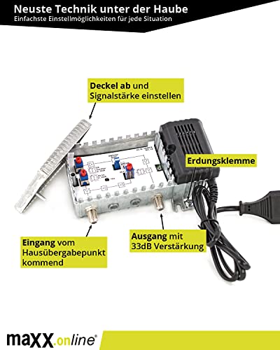 Maxx.onLine vst9341 a amplificatore per tv via cavo, 34 DB, regolabile, BK Amplificatore Cavo vernsehen DVB-T, DVB-C amplificatore per antenna