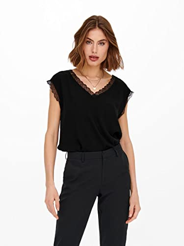 Only Onljasmina S/S Lace Top Fr Wvn Canottiera, Nero, XS Donna