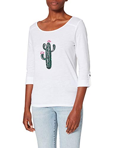 Only ONLKITA Jess 3/4 SEQ Top Jrs T-Shirt, Bianco/Stampa: Big Cactus, S Donna