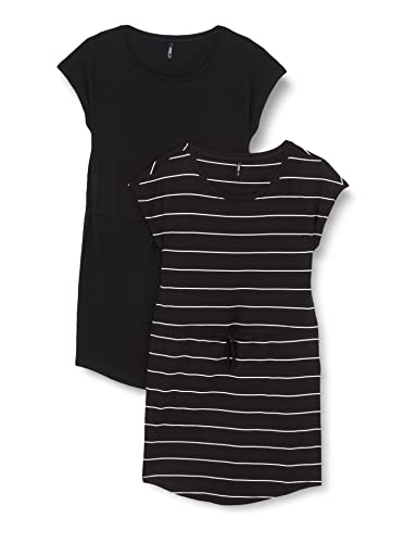 Only Onlmay Life S/S Dress Petite 2pack Jrs, Black/Pack:Thin Stripe CD/Black Solid, S Donna