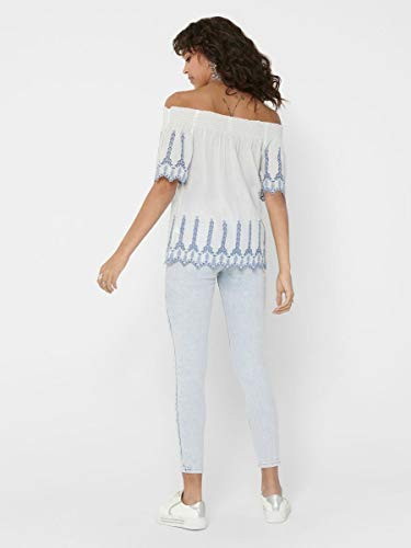 Only Onlshery Contrast DNM Top Camicia da Donna, Bianco (Cloud Dancer Detail: EMB. Ang. in Denim), 44
