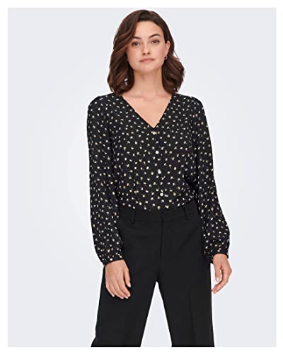 Only Onlsonja Life L/S Button Top Noos Ptm Maglia a Maniche Lunghe, Black/AOP: Julia Small Flower, L Donna