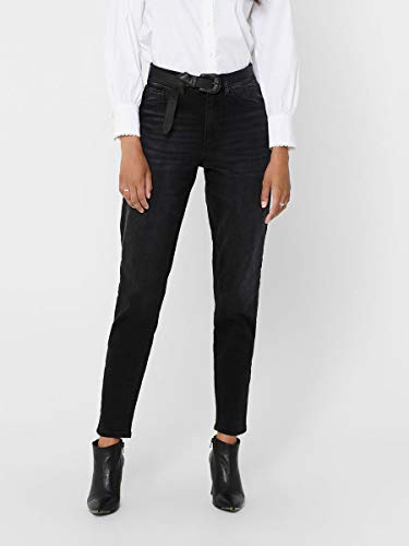 Only ONLVENEDA Life Mom Jeans REA461A Pantaloni, Black Denim, L/32 Donna
