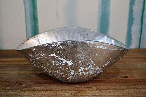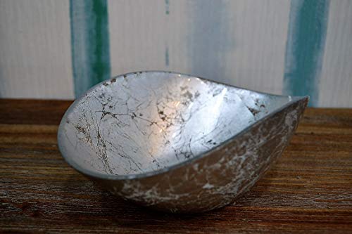 ONLYLUX CENTROTAVOLA Coppa in Vetro BURANO Foglia Argento Mis. 24X16 CM