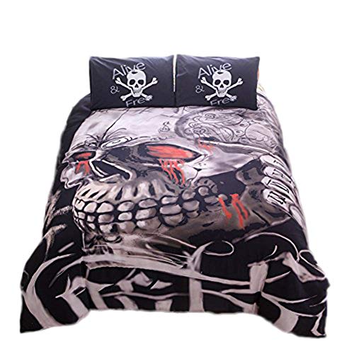 Onlyway, set di copripiumino con teschio senza speranza, set di biancheria da letto scheletro, set di biancheria da letto per Halloween trapunta e federa