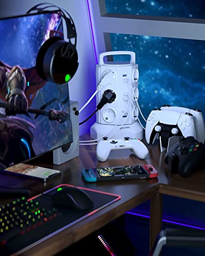 【3 Interruttori Indipendenti & Cavo Retrattile】La torretta multipresa ha un interruttore di controllo individuale su ogni livello, che può spegnere facilmente più dispositivi contemporaneamente quando non sono in uso, rendendo la ciabatta elettrica più a risparmio energetico e più sicura. Le porte USB NON sono controllate dagli interruttori. Dotato di una prolunga di 2 metri, ruotare la ciabatta verticale in senso orario per ritrarre la prolunga per evitare inutili ingombri. La maniglia superiore è facile da trasportare dove vuoi.