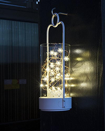 I 20 LED del fiocco di neve sono distribuiti sul filo d'argento. Le lucine alimentate da 2 batterie AA, questi non sono inclusi. Il cavo tra il contenitore di batteria e luci fatate è di circa 50 cm.