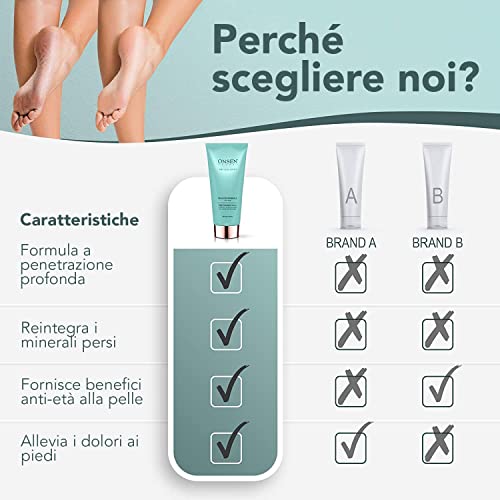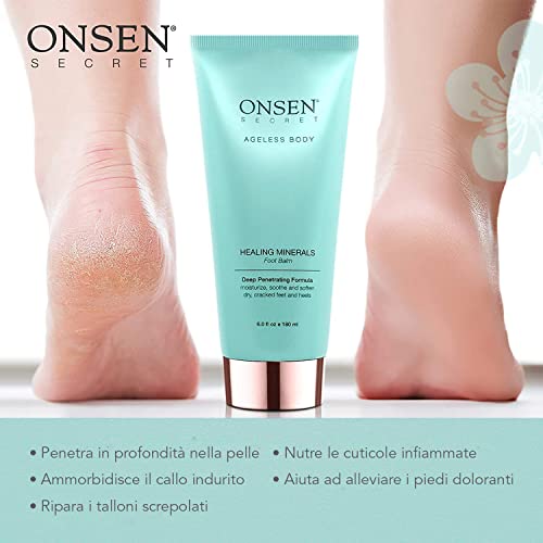 Onsen Secret Foot Cream per talloni screpolati secchi, cura dei piedi per piedi sani, esfoliante per piedi con ingredienti organici vitamina E, burro di karitè, trattamento per piedi secchi 6 fl oz