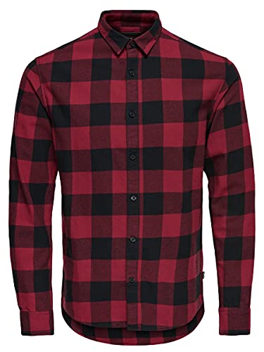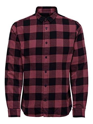 Only & Sons NOS Onsgudmund LS Checked Shirt Noos Camicia, Viola (Maroon Maroon), Small Uomo