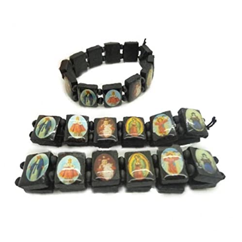 Onsinic Bracciale Santi Cattolici Gioielleria Bracciale Elastico in Legno con Perline, Marrone, Nero, Beige, 7,1 pollici