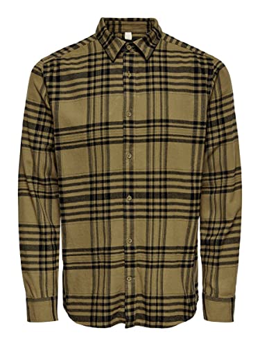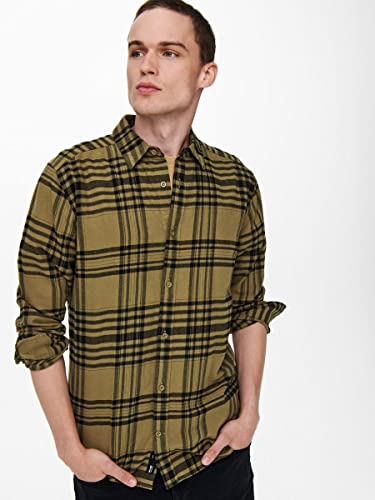 Only & Sons ONSNATE Life LS Check Shirt Camicia, Kangaroo, S Uomo
