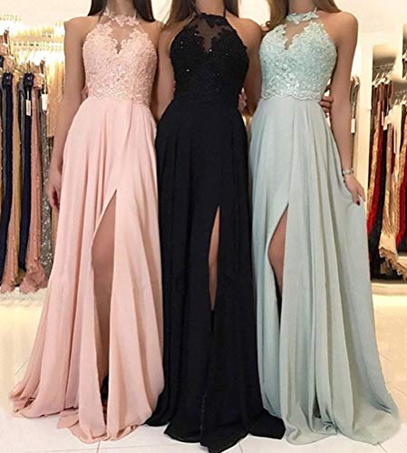 Onsoyours Abiti da Cerimonia Donna Lunghi Eleganti Trasparente Pizzo Semplice Glamorous Cucitura Abito da Sera Smanicato Backless Vita Alta Spacco da Cocktail Partito Vestiti B Nero 42