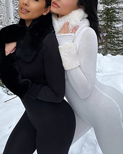 Onsoyours Tuta Aderente a Maniche Lunghe/Senza maniche da Donna Tinta Unita Jumpsuit Playsuit Pantaloni Tutina Sportivo Intero Pagliaccetti Monopezzi A Bianco XS