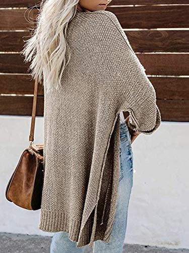 Onsoyours Cardigan Donna Elegante a Maniche Lunghe Giacca Lungo Casual Maglia Maglione Cappotto Tinta Unita Outwear Autunno Invernale Cachi 46