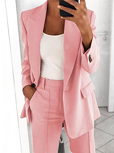 Onsoyours Donna Blazer Basic Colletto Rivolto Tinta Unita Elegante Ufficio Business Tailleur OL Carriera Tailleur Giacca Eleganti per Ragazze e Donna Rosa S