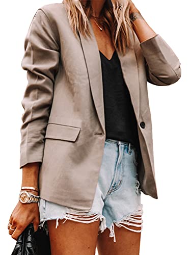 Onsoyours Donna Blazer Basic Colletto Rivolto Tinta Unita Elegante Ufficio Business Tailleur OL Carriera Tailleur Giacca con 1 Bottone Corto OL Tailleur Giacca Cachi S