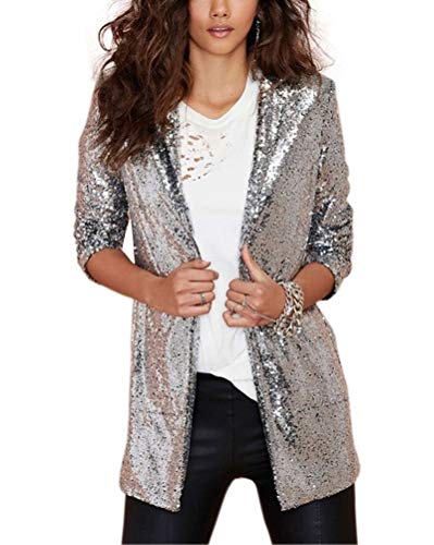 Onsoyours Donna Blazer Tailleur Giacca Lustrino Maniche Lunghe Giacche Partito Aderente Inverno Autunno B Bianco 38