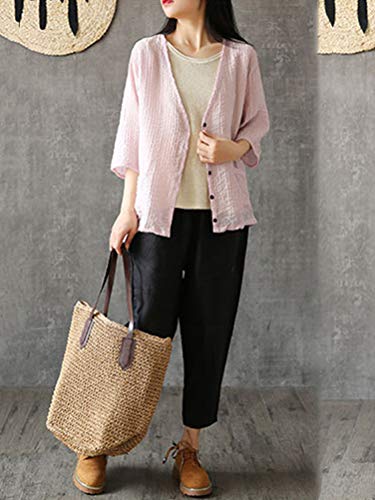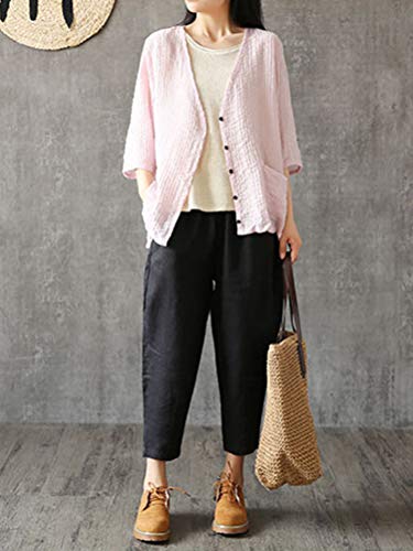 Onsoyours Donna Cropped Pantaloni Larghi Estivi Casual Pantalone in Lino Spiaggia Morbidi Confortevoli Pantaloni Casual Larghi Colore Solido A Nero Medium