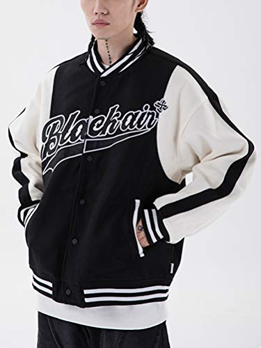 Onsoyours Giacca Varsity Uomo Giacca da Baseball da Uomo Cappotto Unisex Jacket Felpa Motociclista Giubbotto Giacca da Coppia E Nero XXL