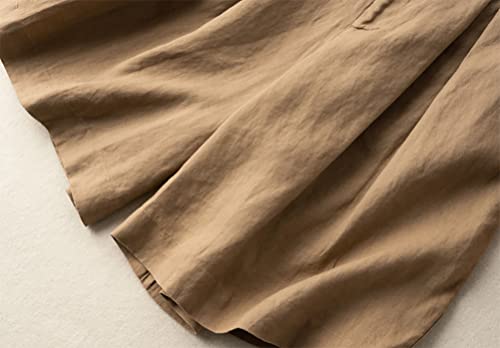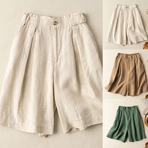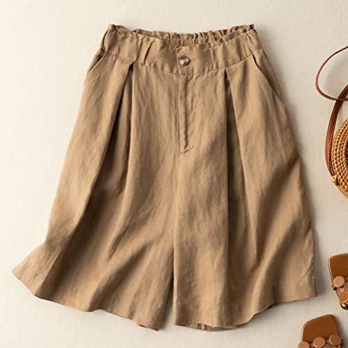 Onsoyours Pantaloncini Donna Comodi Short Cotone Linoe Eleganti Estivi Vita Alta Tinta Unita Casual con Tasca Pantaloni Corti da Spiaggia A Cachi XL