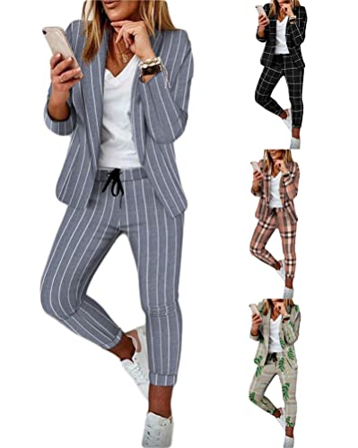 Onsoyours 2 Pezzi da Tuta da Donna Casual Elegante Business Suit Set Maniche Lunghe con Pantaloni Ufficio e Tailleur con Pantaloni Moda Abiti Set per Ufficio B Nero M