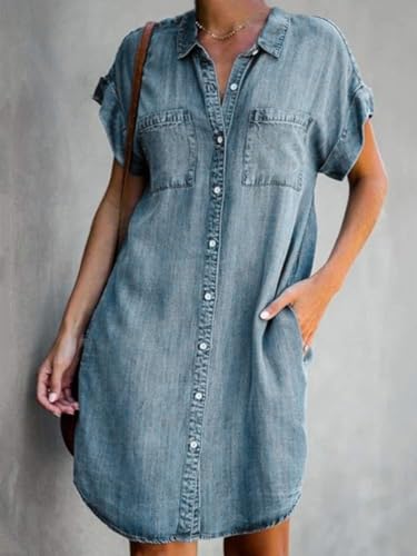 Design: vestiti jeans donna estivi vestiti camicia donna maniche corte camicia lunga con tasca estate blu vestiti donna casual mini vestito scoll a v partito mini vestito denim vestiti