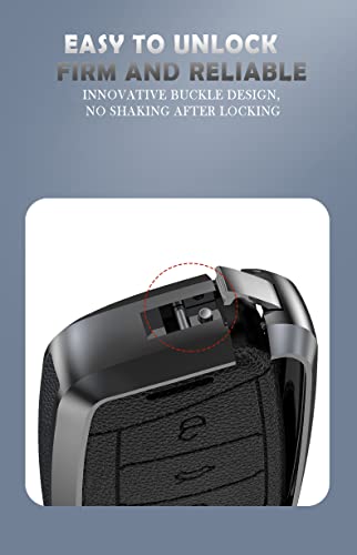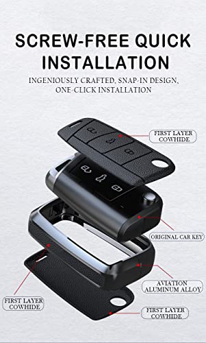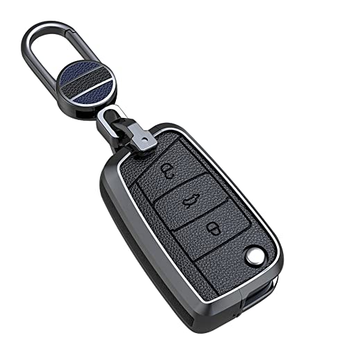 Ontto Cover per Chiave Auto, Adatta per VW Golf 7 MK7, Jetta T-ROC, Seat Leon 3, Ibiza Ateca Skoda Fabia Karoq, in Metallo, in Pelle, per Chiavi, Colore Nero