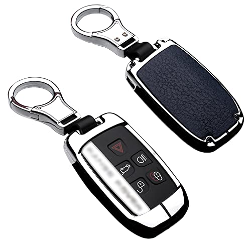 Ontto Custodia Cover Protettiva per Chiave Telecomando Auto in Lega di Zinco per Land Rover Discovery 4 Range Rover Sport LR4 Evoque Freelander Jaguar XE XJ XF Guscio Coprichiave-Argento Blu