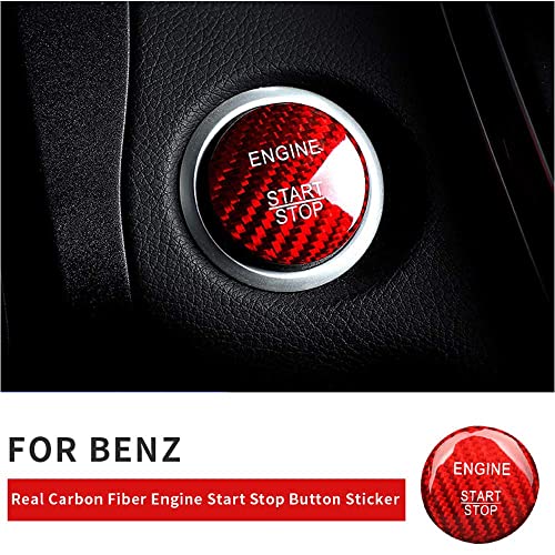 Ontto Fibra di Carbonio Auto Start Stop Engine Pulsante Adesivo per Mercedes Benz C200L GLA200 GLC260 B200 Interruttore di Accensione Pulsante Copertura Adesivo Trim Decorazione-Rosso