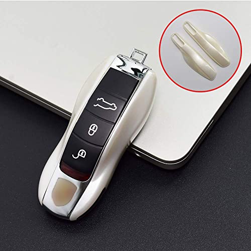 Ontto Guscio Cover per Chiave Pieghevole Telecomando per Porsche Macan Panamera 918 911 981 991 Boxster Cayenne Cayman in ABS Plastica Custodia Protettivo Coprichiave Portachiavi 3 Pulsanti -Bianca