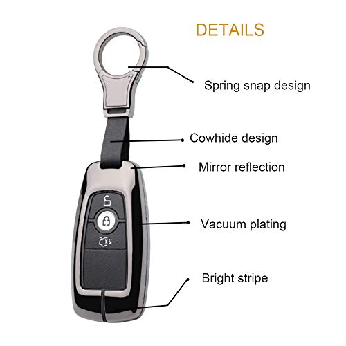 Ontto Guscio Cover per Chiave Telecomando per Ford Focus Ecosport Fusion Mondeo Mustang F-150 Edge Focus 2 3 MK4 Coprichiave in Lega di Zinco e Pelle Custodia Protettivo Portachiavi-Argento Rosso A